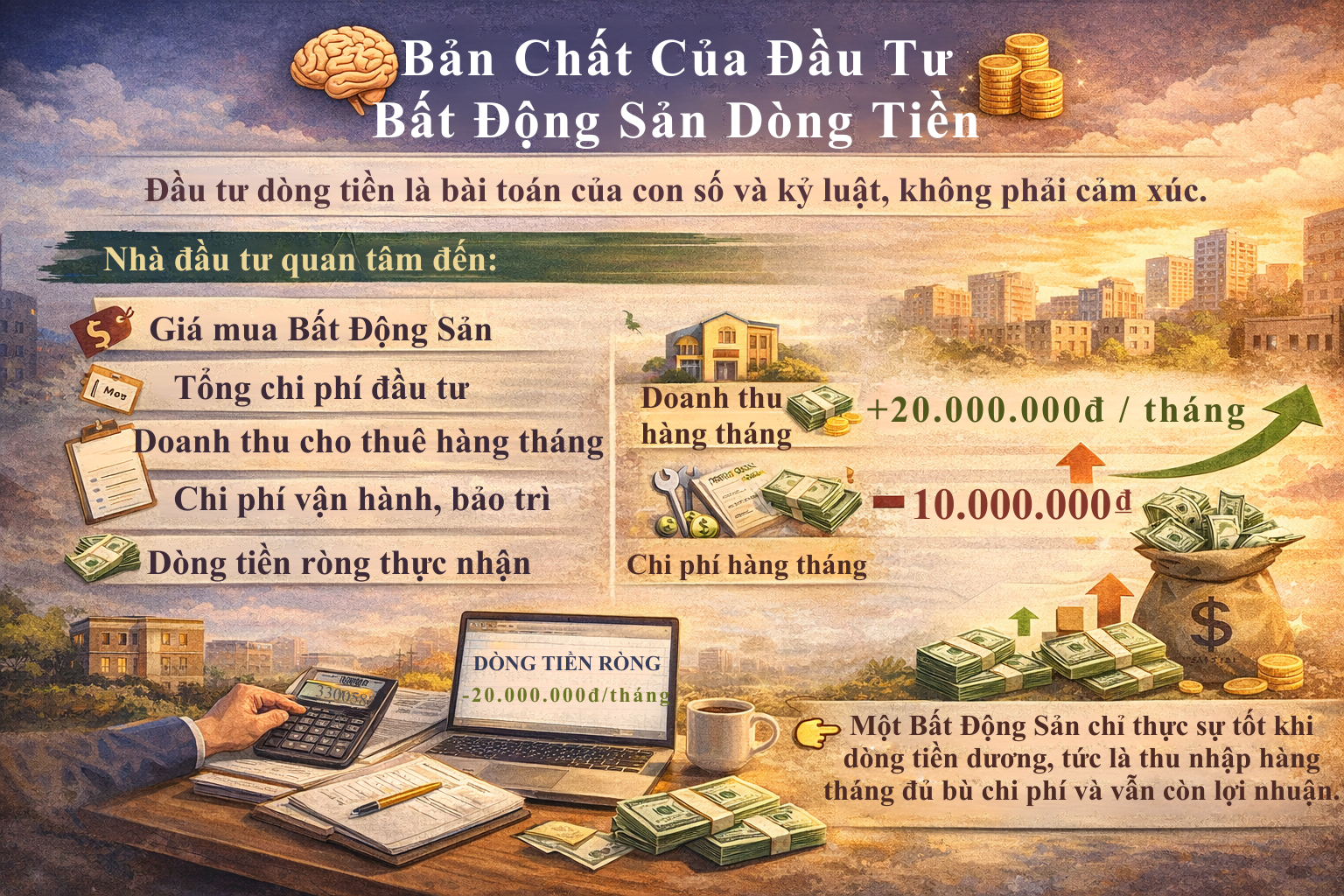 Đầu tư dòng tiền là bài toán của con số và kỷ luật, không phải cảm xúc.